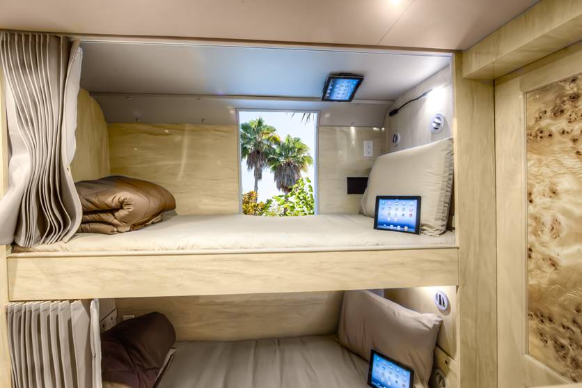 iPad HD's (iPad 3) in each bunk for audio/video/web entertainment